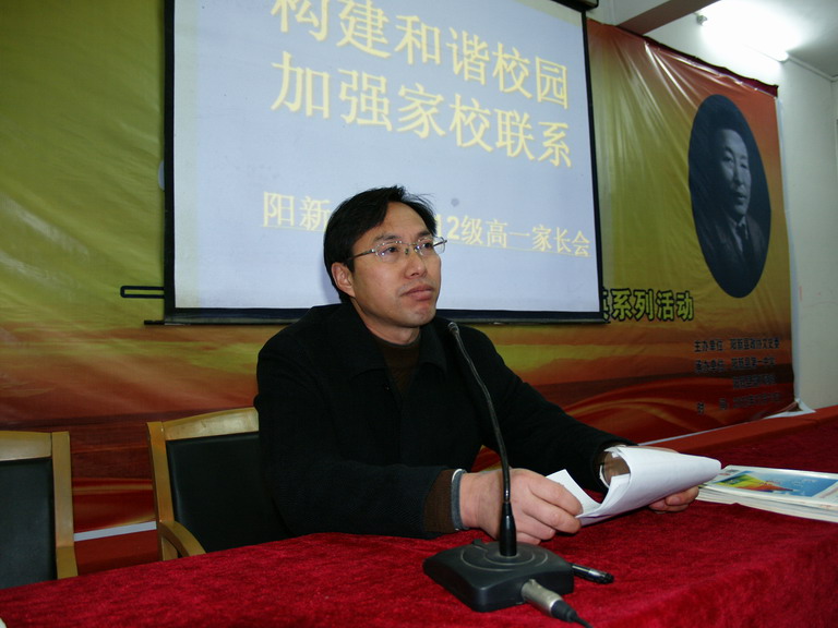 12月15日 上午,阳新一中2012级高一年级在综合楼阶梯教室召开高一年级家长会。会议由高一年级党支部书记徐美姝主持。梁师稳副校长发表了专题讲话。