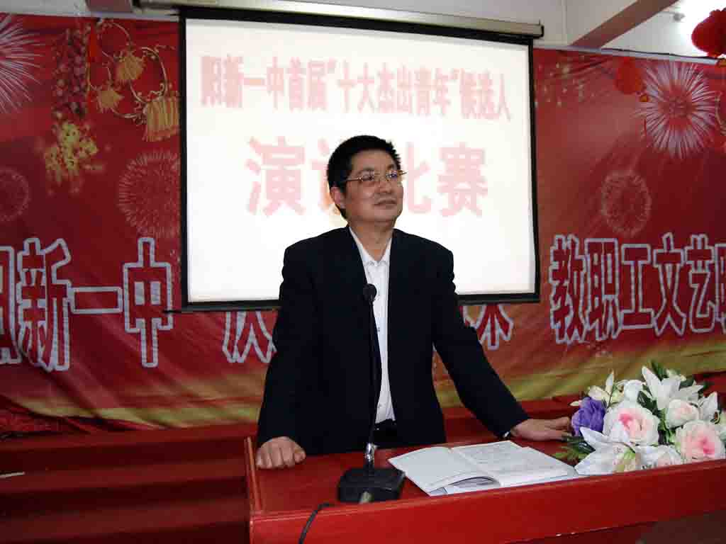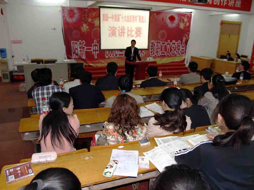 为了迎接即将到来的“五四”青年节,为了挖掘和表彰一批为学校的发展做了突出贡献的青年教师,4月26号晚上七点半,阳新一中首届“十大杰出青年教师”候选人演讲比赛活动在综合楼阶梯教室如期举行。以赵立中校长为首的所有校级领导、各年级、各处室负责人等领导教师出席了此次活动。在场校级领导和各处室主任担任评审嘉宾。活动由刘元庆老师主持。
