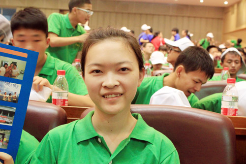 在我们玩耍、学习、生活的背后,还有一群默默工作的志愿者,他们放弃暑假休息的机会,留在骄阳似火的武汉陪伴我们。当我在偌大的校园迷路的时候,当我需要帮助的时候,他们总会及时出现,看着他们脸上的汗水,湿透的衣服,我的心中总会充满感激。