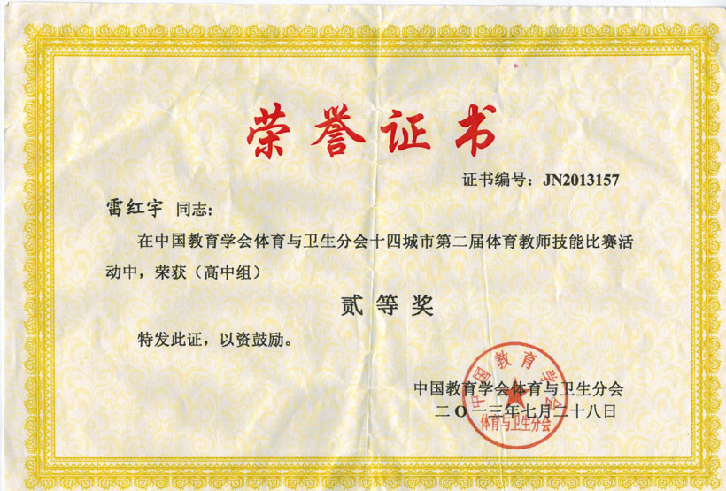 我校体育老师雷红宇荣获嘉奖