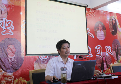 随后,分管教学工作的学校副书记、副校长明道树对新学年的教学工作进行了部署。他要求广大教师认真学习2013届备课经验,并提出三点指导意见。一是把握大趋势,结合实际,积极参与到市教育系统开展的 “转观念、改作风、提质量、树形象”主题教育实践活动中,做一名“学生欢迎、家长放心、同事认可”的教师。二是抓好教学常规,落实教学环节,切实提高教学质量。他说,做好教学常规是提高教学质量的根本保证,教师们要注重常规教学,落实好备、教、批、辅、考和反思六大环节。三是聚焦课堂,推进课改,实施有效教学。他特别指出,教学设计是教学理念的实践,教学设计要体现以学生为主体,发挥学生学习的主观能动性,注重多种教学方法、教学手段的运用,培养学生的自主探究意识。