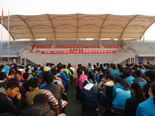 11月22日上午,阳新一中高二年级在学校运动场举行上学期期中总结表彰大会。阳新一中校长赵立中、阳新一中副校长梁师稳、高二年级主任李朝忠、高二年级党支部书记徐美姝、高二年级工会组长梁梁老师出席总结表彰大会。大会由高二年级主任李朝忠主持。