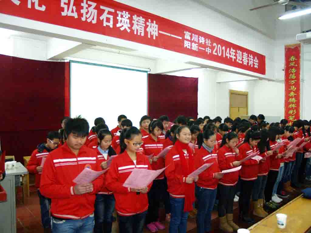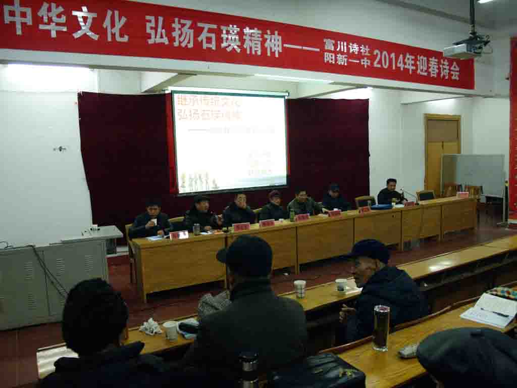 2014年1月8日(农历2013年12月初八),由富川诗社和阳新一中联合举办的2014富川诗社迎春诗会在我校阶梯教室隆重召开。