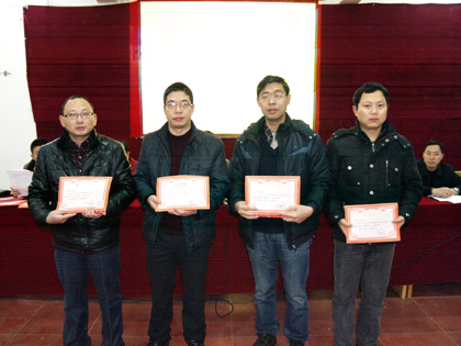 会上,潘龙星副校长宣读了《阳新一中关于表彰2013学年度先进个人的通告》,阳新一中全体校领导为获得先进个人荣誉的教师颁发了荣誉证书和奖金。学校党总支委员、纪检书记方长风带领大家学习教育部新颁布的《中小学教师违反职业道德行为处理办法》,端正思想,严肃教风。